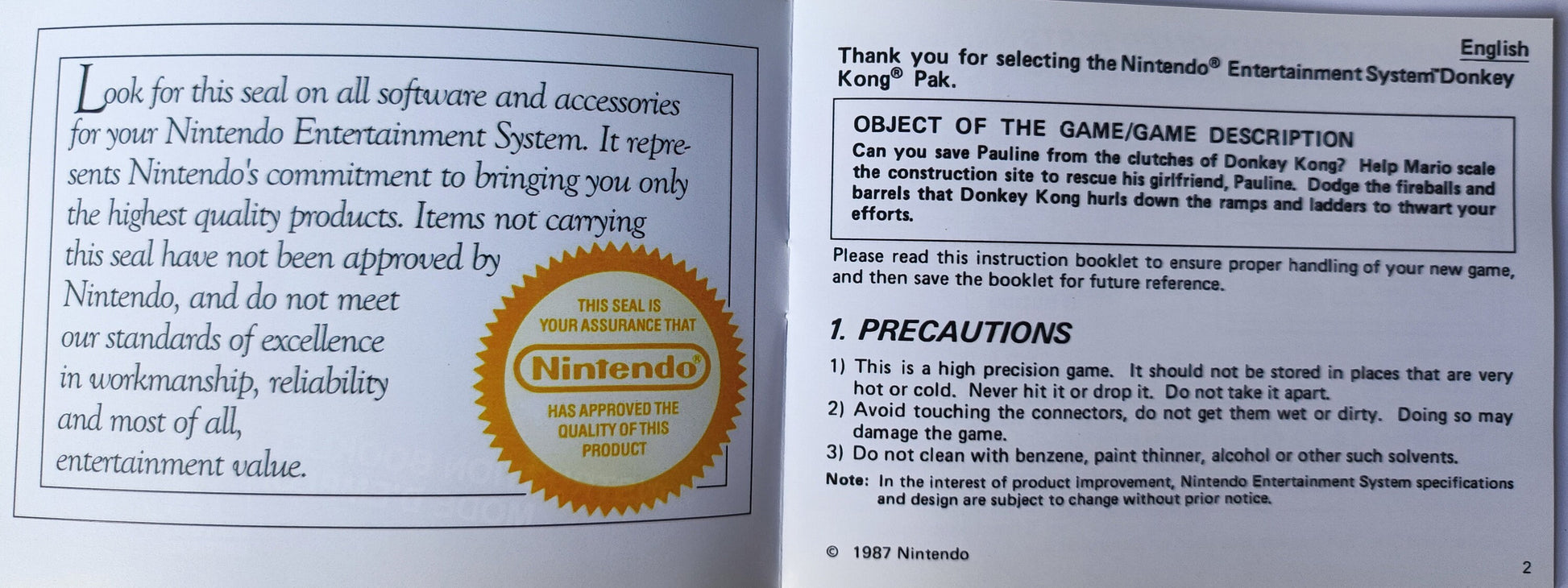 Notice Donkey Kong- ASD - NES - Français/Anglais -