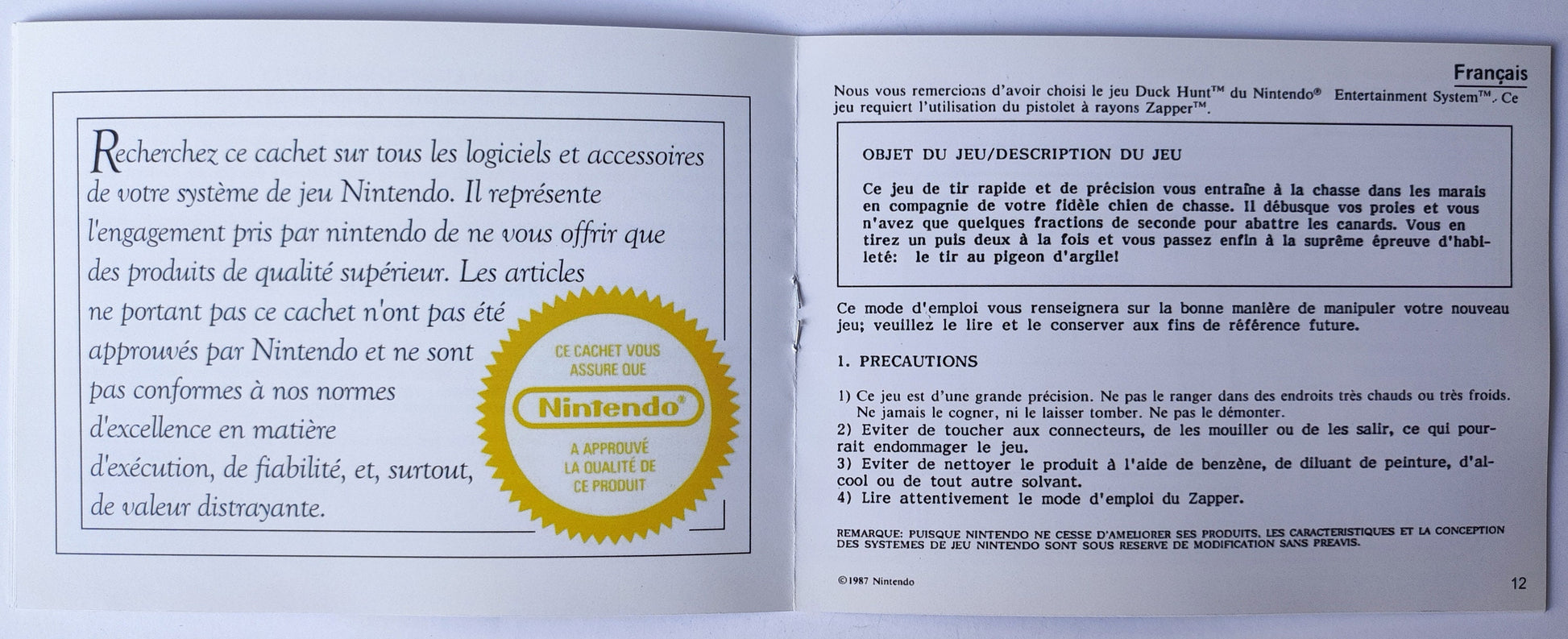 Notice Duck Hunt- ASD - NES - Français/Anglais -